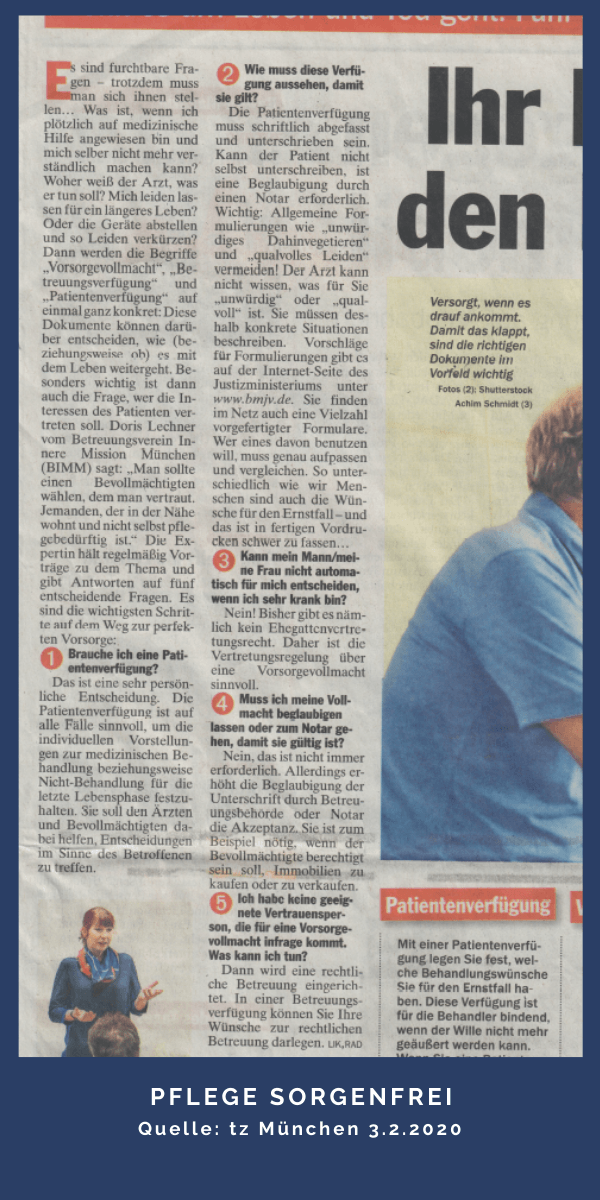 Um Ihnen die Vorbereitung leichter zu machen, haben wir die wichtigsten Unterlagen im Downloadbereich für Sie zur Verfügung gestellt. Sie finden alle Vorlagen unter Patientenverfügung.